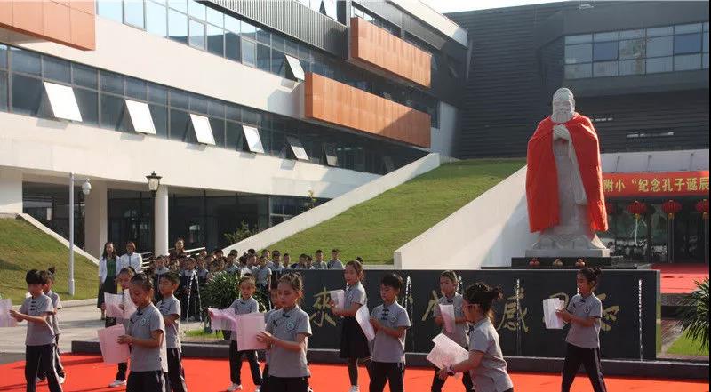 老师们在孔子像前,共同齐诵孔子教育思想——因材施教、教学相长、有教无类、温故知新、学思并用,感受着千年传承的智慧。