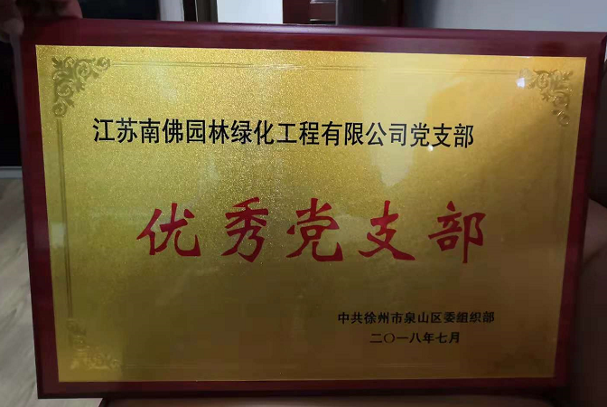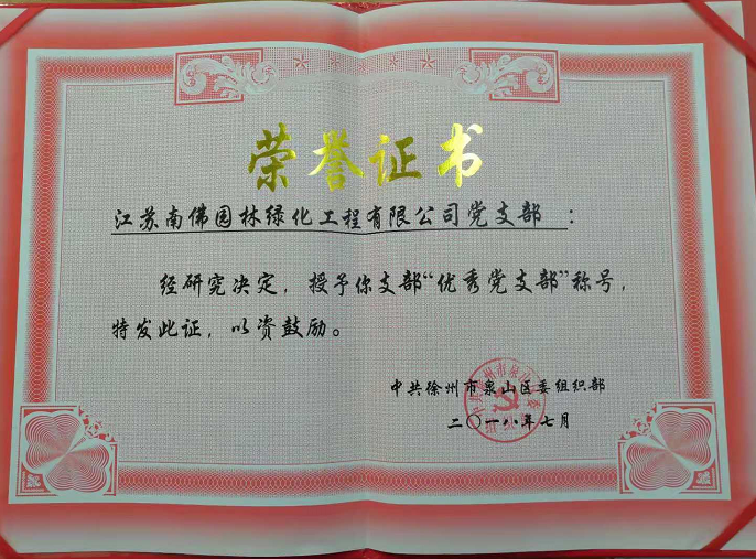 江苏南佛园林绿化工程有限公司在2018年度党建工作中成绩优异,业绩突出,荣获“优秀党支部”荣誉称号。