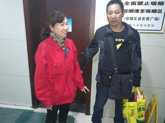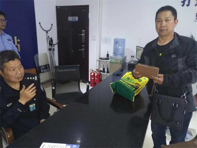 曹经理向周围吆喝了几声,没人回应。又跑到检票口来回询问,还是没有找到失主。就在曹经理准备向上级汇报情况时,一名客运司机前来询问发生了事情,便把捡到钱包的事告诉他。司机得知此事后说道:“现在就我这一辆车没走了,我拿上去问问,不行就抓紧报警吧。”说完就转身向车上跑去。不一会儿,一名男子跟着司机下了车,此人正是钱包的失主何先生。                                                                               失主何先生前来认领钱包。           左为项目点曹经理,右为失主何先生。