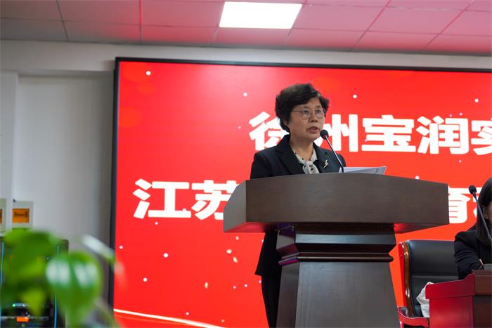董事局董事、徐州市树恩中学总校长兼初中部高铁校区校长薛淑萍同志做工作汇报。